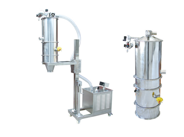 真空加料機(jī)由真空泵(無(wú)油、無(wú)水)、真空料斗、過(guò)濾器(有聚酯覆膜過(guò)濾器、PE過(guò)濾器、316L不銹鋼過(guò)濾器或鈦金屬過(guò)濾器多種選擇)、壓縮空氣反吹裝置、氣動(dòng)放料門裝置、料位自動(dòng)控制裝置、不銹鋼吸料咀、輸送軟管等組成,整套系統(tǒng)設(shè)計(jì)合理、制造精美。