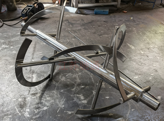 SYD型雙向動(dòng)力混合機(jī)由料桶、機(jī)架、減速傳動(dòng)、攪拌葉片等構(gòu)成。該機(jī)的工作過(guò)程是:把需混合的幾種物料通過(guò)真空輸送或人工加料投放到水平雙錐體內(nèi),上好筒蓋,開起設(shè)備,雙錐筒及攪拌葉片同時(shí)轉(zhuǎn)動(dòng),旋轉(zhuǎn)的雙錐筒使筒體內(nèi)物料產(chǎn)生紊亂翻滾混合,高速旋轉(zhuǎn)的攪拌葉片打碎結(jié)團(tuán)物料,使物料在筒體內(nèi)快速混合。SYD型雙向動(dòng)力混合機(jī)工作過(guò)程無(wú)死角,無(wú)沉積,可使混合的物料快速達(dá)到均勻一致的效果。
