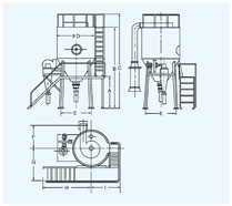 空氣經(jīng)過濾和加熱,進(jìn)入干燥器頂部空氣分配器,熱空氣呈螺旋狀均勻地進(jìn)入干燥室。料液經(jīng)塔體頂部的高速離心霧化器,(旋轉(zhuǎn))噴霧成極細(xì)微的霧狀液珠,與熱空氣并流接觸在極短的時(shí)間內(nèi)可干燥為成品。成品連續(xù)地由干燥塔底部和旋風(fēng)分離器中輸出,廢氣由風(fēng)機(jī)排空。